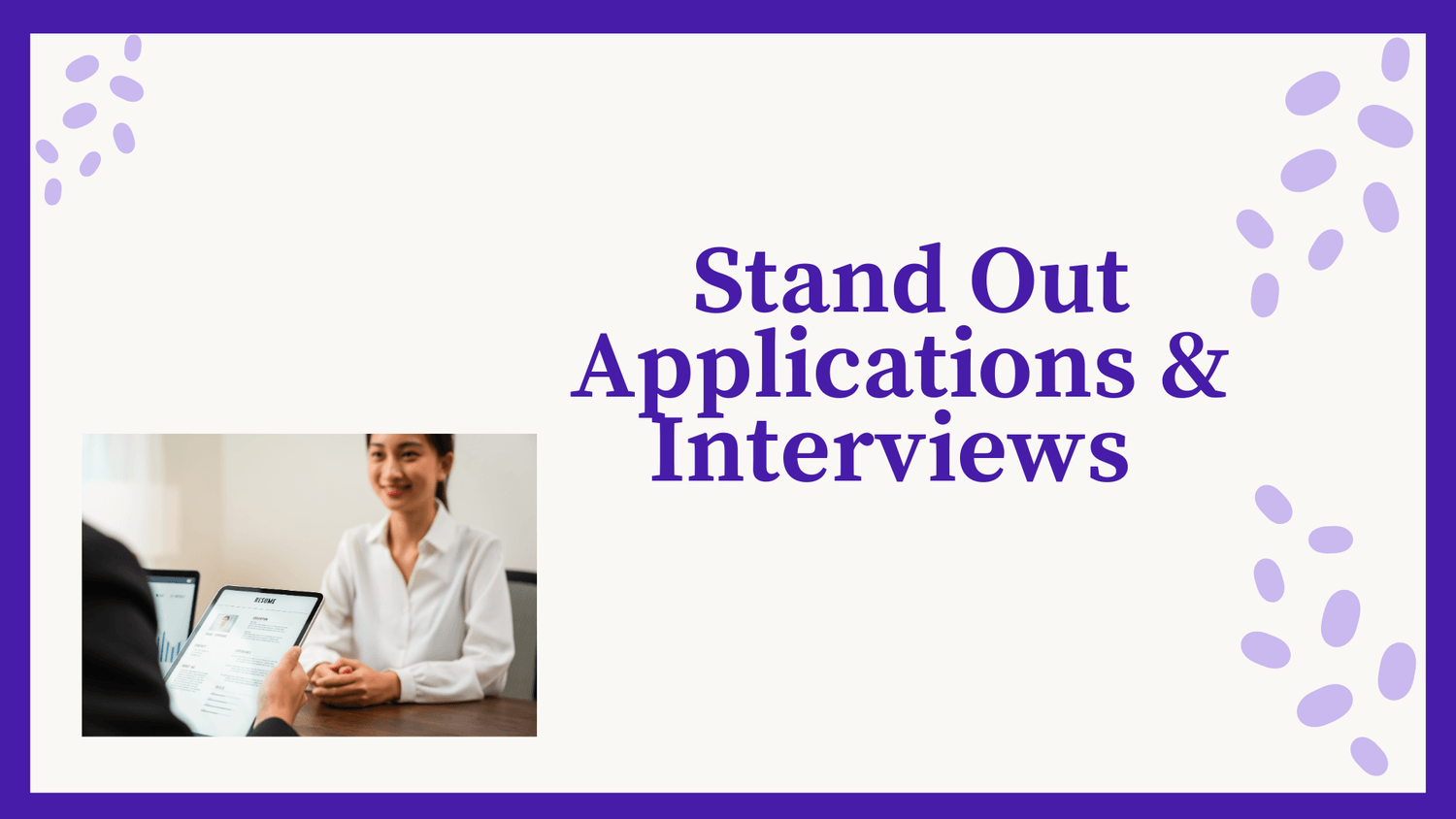 “Brand You” - How to stand out in person and in your application by crafting the right Impression and demonstrating your passion & interests.